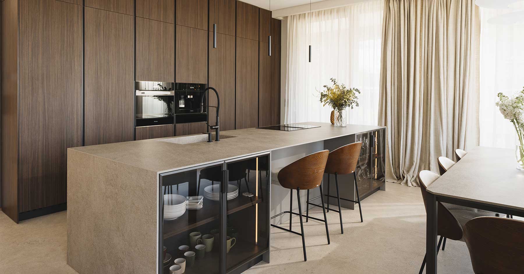 Estilo al máximo exponente con un nivel de personalización excepcional. La elegancia de la madera alistonada combinada con infinidad de acabados en interiores y sistema de auto cierre automático de cajones.